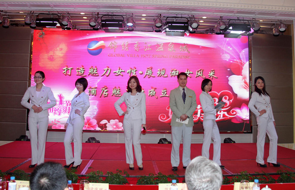 隨后的活動(dòng)更是讓大家享受了一次視覺(jué)大餐。一首夜上海掩飾不了舞者的美麗,她們用婀娜多姿的舞步詮釋了女性魅力;工衣秀更是展現(xiàn)酒店員工內(nèi)在氣質(zhì)的美;動(dòng)感的禮儀操更是把酒店服務(wù)禮儀及員工對(duì)工作的激情展現(xiàn)淋漓盡致。精彩的節(jié)目迎來(lái)了現(xiàn)場(chǎng)觀眾熱烈的掌聲。