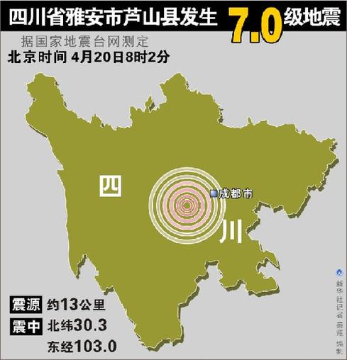 據(jù)中國地震臺網(wǎng)測定,北京時間4月20日8時02分四川雅安蘆山縣發(fā)生7級地震,目前遇難同胞已近200人,群眾生命財產(chǎn)損失難以估計……
