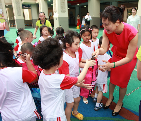 在參觀園區(qū)時(shí),翟美卿來到了正在唱歌、跳舞、做游戲的孩子們當(dāng)中,共同分享他們的快樂,孩子們還爭(zhēng)先向“翟媽媽”展示自己的畫作。翟美卿非常重視學(xué)前教育,本次慰問中為孩子們準(zhǔn)備了一份特別的禮物——香港ICAN全人教育。當(dāng)天,來自全人教育機(jī)構(gòu)的培訓(xùn)總監(jiān)陳瑞冰博士為老師和家長(zhǎng)們帶來了一堂生動(dòng)的“全人教育”課,這也是“全人教育”的第一講,翟美卿親臨現(xiàn)場(chǎng)進(jìn)行體驗(yàn)。