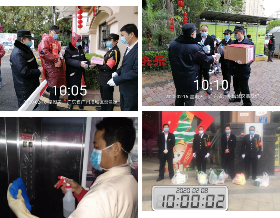 直面疫情,增城物業(yè)人無(wú)畏無(wú)懼,奮勇?lián)?dāng)。在住戶隔期期間,增城物業(yè)積極配合政府進(jìn)行24小時(shí)的輪崗監(jiān)控及安全巡查,并成立物資配送小組協(xié)助業(yè)主解決生活需求,安排管家專送服務(wù)。在疑似病例確診后,面對(duì)其他住戶的擔(dān)憂和強(qiáng)化防控的壓力,項(xiàng)目積極、迅速啟動(dòng)緊急防疫方案,一方面用心解答客戶疑問(wèn)、穩(wěn)定住戶情緒,另一方面緊急對(duì)小區(qū)所有樓層、公共場(chǎng)所進(jìn)行無(wú)死角、全方位的消毒殺菌工作(還專設(shè)臨時(shí)消毒屋進(jìn)行防御),愛(ài)心接力協(xié)助自我隔離業(yè)主清理生活垃圾等,系列舉措得到了業(yè)主及政府部門(mén)的高度認(rèn)可,也有效地控制了小區(qū)疫情的蔓延。